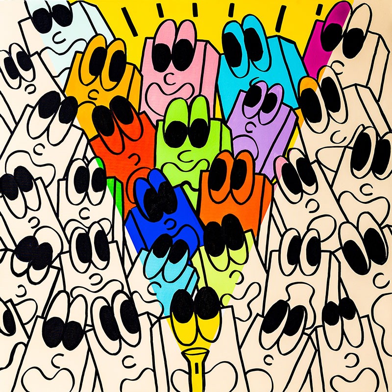 L’artista ossessionato dalla Pop Art e dall’Arte Contemporanea, esprime tutte le sue opere con colori vivi, vibranti e sgargianti, introducendo sempre il suo iconico personaggio “Cuby”, nato per caso da un gesto occasionale é diventato parte di tutti i suoi lavori tanto da utilizzarlo con firma.