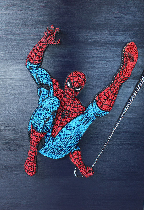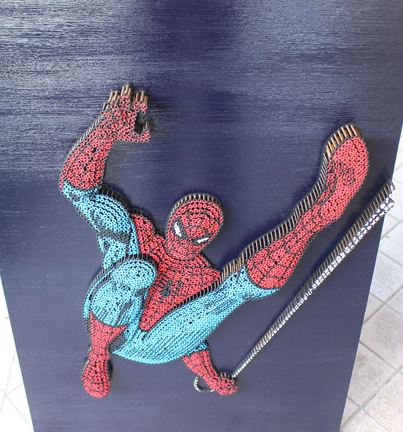 L’originalità di questo lavoro è  l’effetto tridimensionale che si ottiene avvitando delle comunissime viti in varie profondità che dipingendoci sopra si trasforma in un’opera scultorea e pittorica contemporanea.