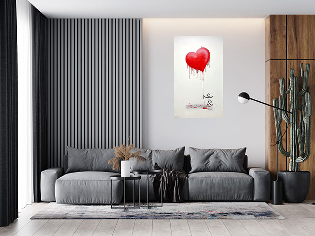 La presenza di una bambina che tiene il palloncino aggiunge significato all’opera. Rappresenta l’innocenza e la purezza dell’infanzia, contrastando con la complessità delle emozioni del cuore.