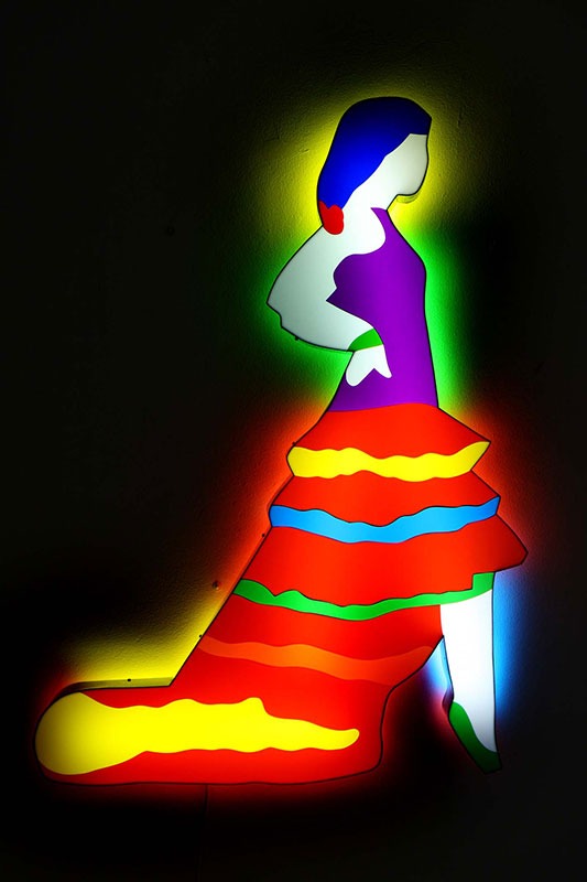 La scultura del Maestro Marco Lodola, contiene un insieme di elementi quali la luce, il colore e la creatività come ingredienti fondamentali che caratterizzano il suo percorso artistico. In queste creazioni luminose realizzate in perspex, l’anima pop di Lodola si manifesta appunto per stare in mezzo a noi, parlando con semplicità il linguaggio comune.