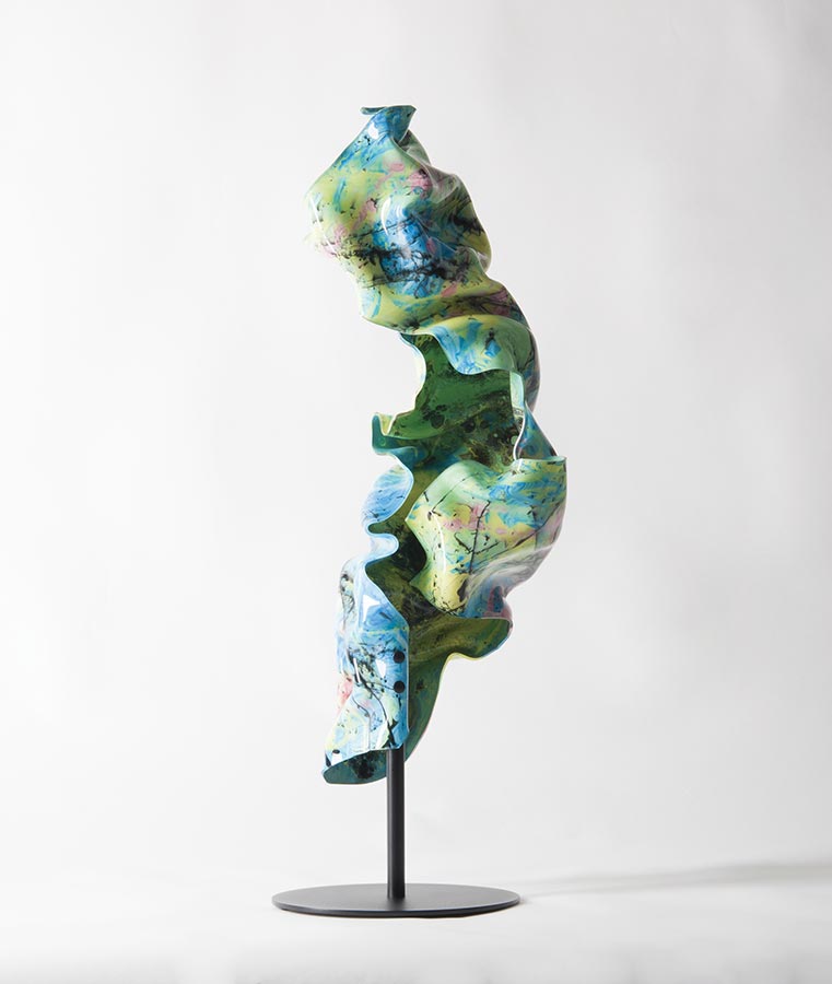 Scultura in metacrilato pigmentata con smalti e termoformata, firmata dall’artista attraverso microsabbiatura.