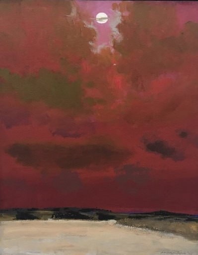 Il paesaggio di Addamiano è appercezione biografica, prima di tutto, è immersione e fluenza affettiva: e ogni cielo è la pagina di un privatissimo journal, notte dopo notte, luce dopo luce, sentimento dopo sentimento. La condizione che egli sceglie per se stesso è quella della plenitudine dell’immersione emotiva, ma allo stesso tempo di una messa in distanza della visione: l’orizzonte non è transito possibile, ma confine incoercibile della lontananza assoluta, dell’irraggiungibile. Protagonista assoluto, dunque, il cielo stellato. Addamiano lo ausculta in profondità , ne risente gli umori ultimi, attraverso il suo istinto, vocazionale e insieme affinatissimo per tecniche, del colore.