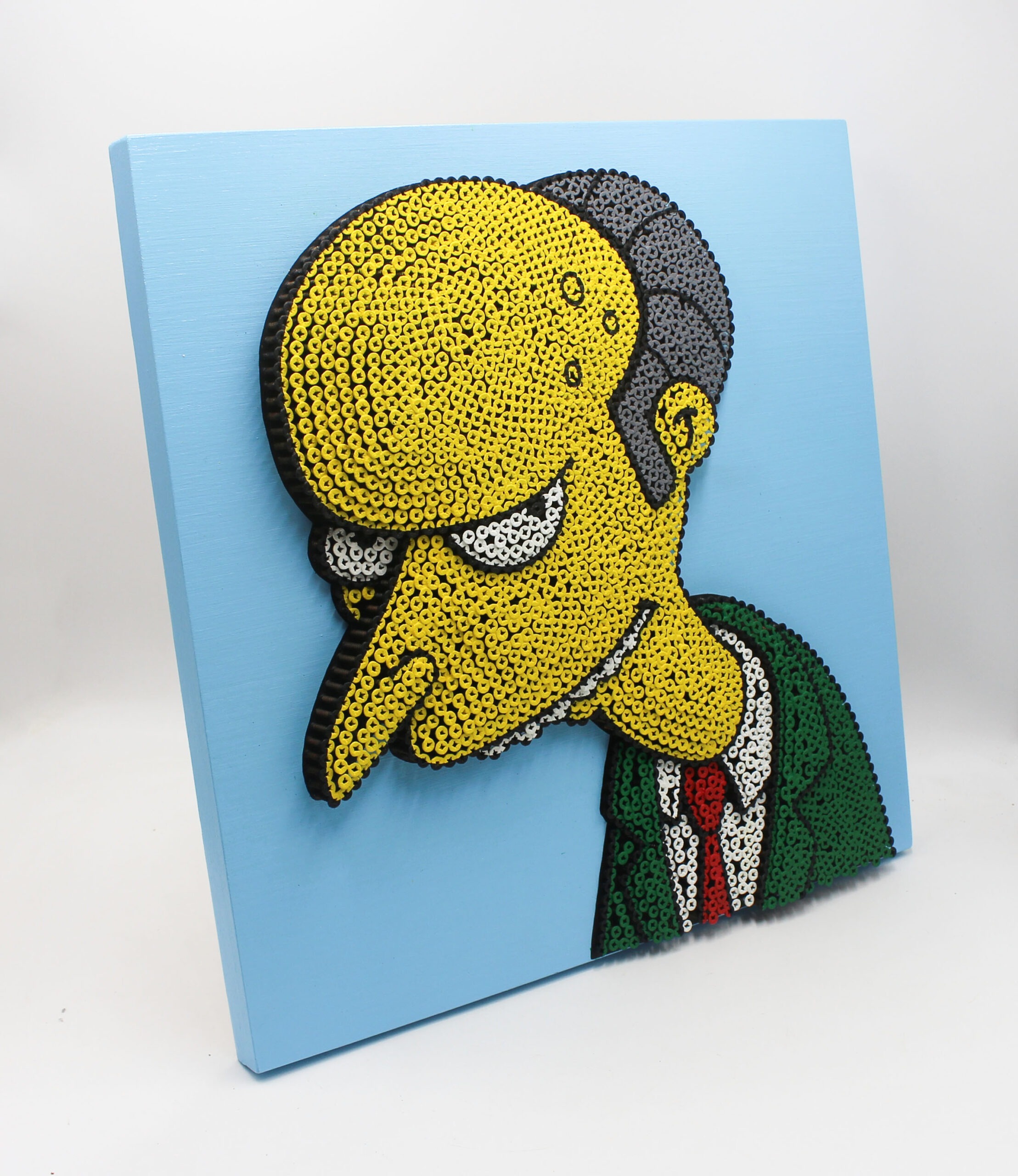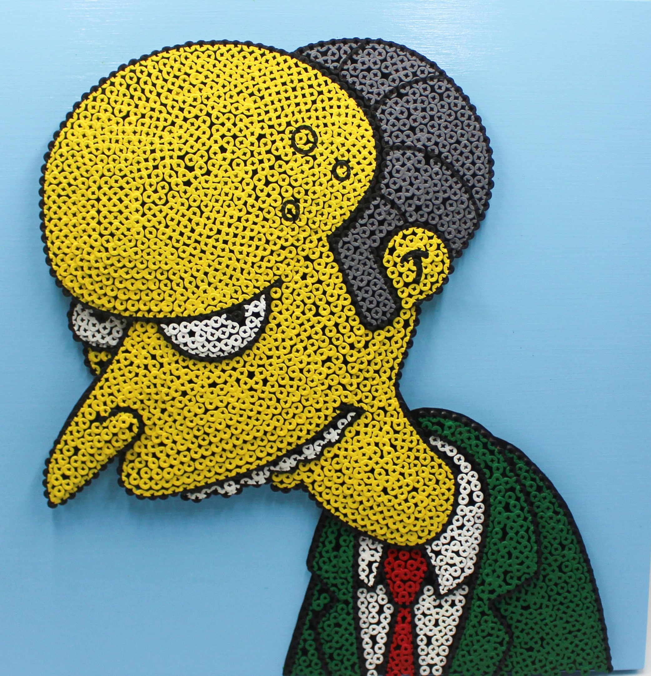L’originalità di questo lavoro è l’effetto tridimensionale che si ottiene avvitando delle comunissime viti in varie profondità che dipingendoci sopra si trasforma in un’opera scultorea e pittorica contemporanea.