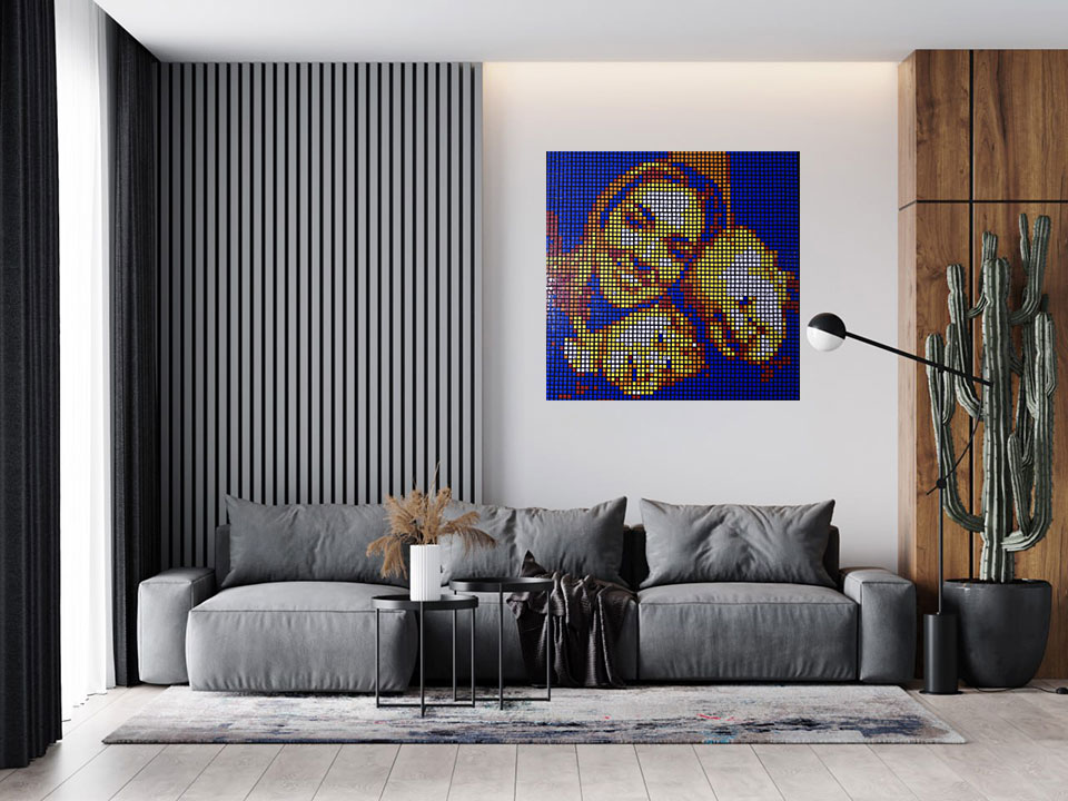 Partendo da una tua fotografia o un’immagine iconica che vuoi ricreare, l’artista Daniel Motta, costruisce un quadro artistico composto da Cubi di Rubik risolti in modo da ricreare la grafica iniziale.