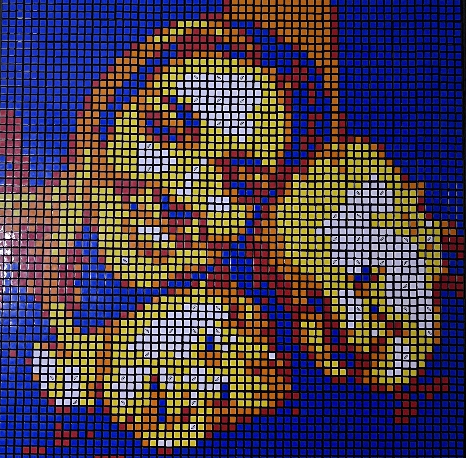 Mosaico interamente realizzato utilizzando cubi di Rubik