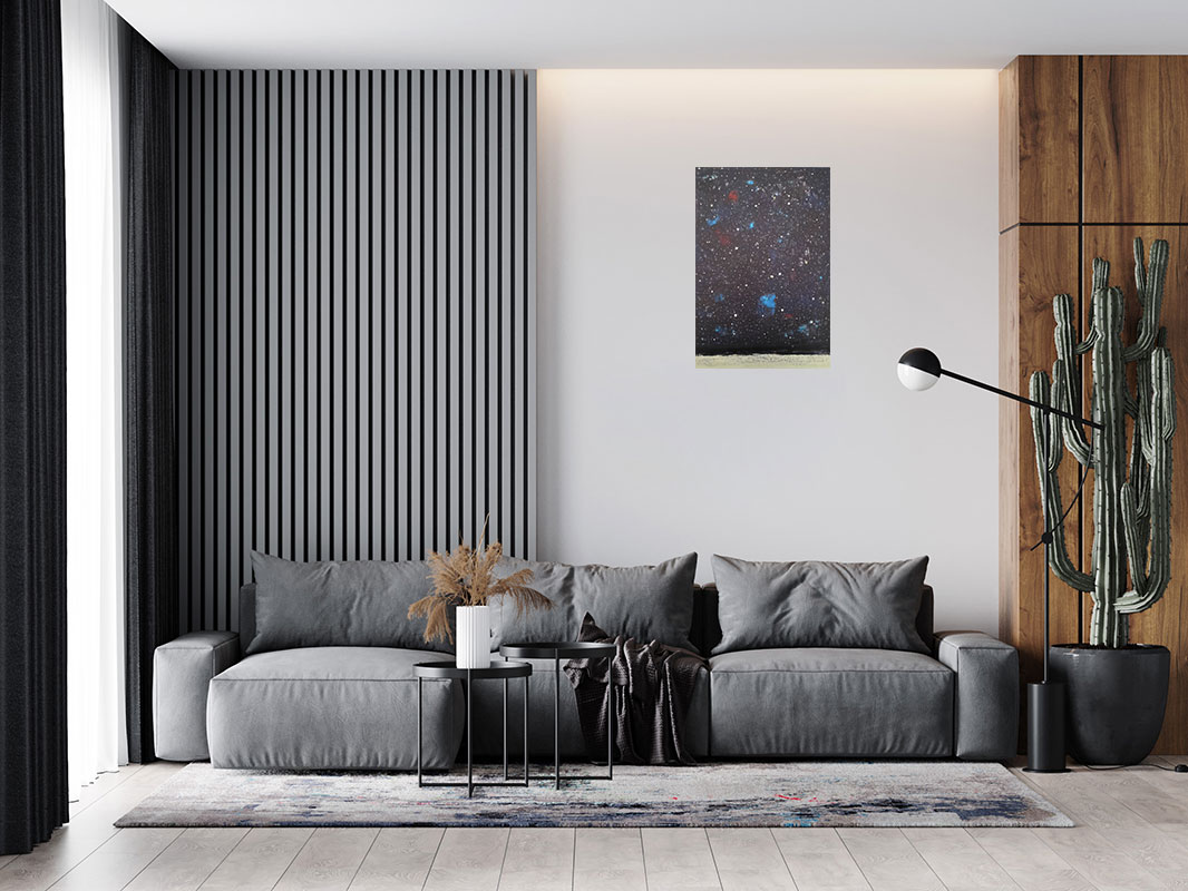 Raffinata astrazione, straordinaria bellezza e semplicità in queste serigrafie di Natale Addamiano. In ciascuna grafica la gamma cromatica gioca su variazioni di colori. I cieli vibrano di piccoli segni di luce, in variazioni infinite caratterizzate da larghe campiture che muovono lo spazio con una felicità e poesia pittorica unica, i paesaggi decantano sensazioni e colori, quasi a voler essere là.