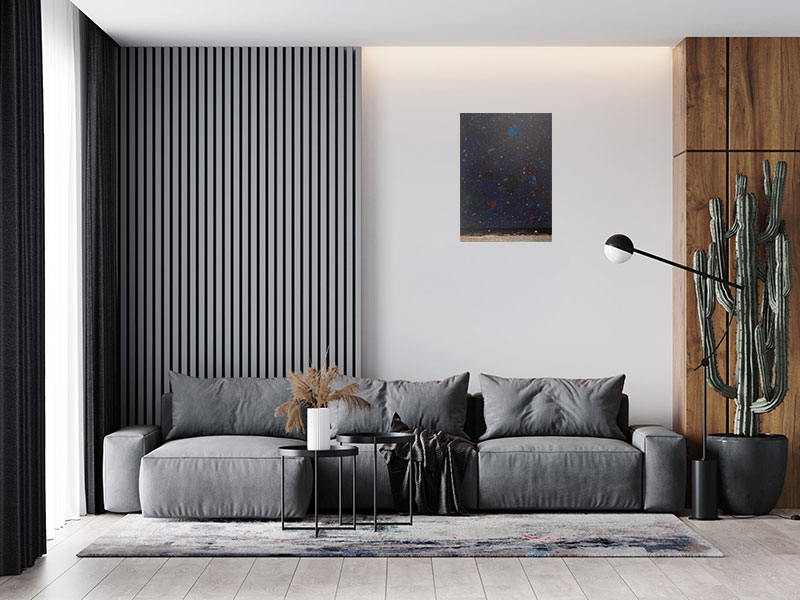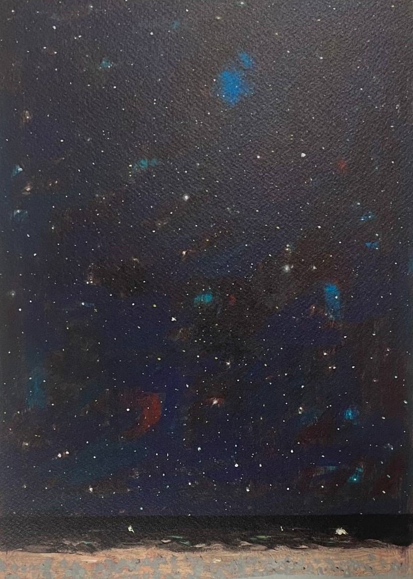 Raffinata astrazione, straordinaria bellezza e semplicità in queste serigrafie di Natale Addamiano. In ciascuna grafica la gamma cromatica gioca su variazioni di colori. I cieli vibrano di piccoli segni di luce, in variazioni infinite caratterizzate da larghe campiture che muovono lo spazio con una felicità e poesia pittorica unica, i paesaggi decantano sensazioni e colori, quasi a voler essere là .