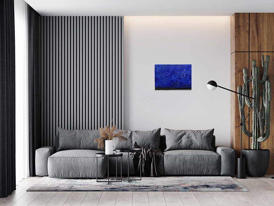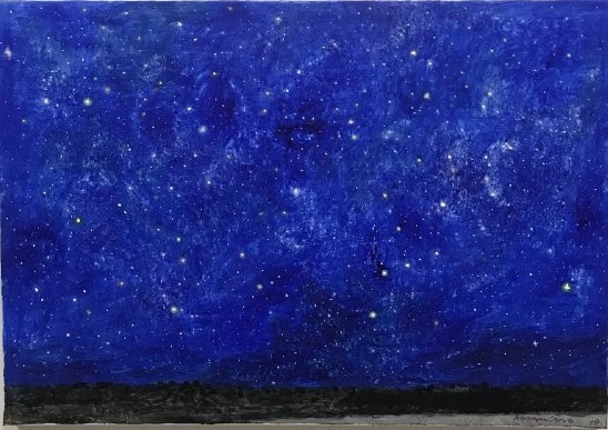 Il paesaggio di Addamiano è appercezione biografica, prima di tutto, è immersione e fluenza affettiva: e ogni cielo è la pagina di un privatissimo journal, notte dopo notte, luce dopo luce, sentimento dopo sentimento. La condizione che egli sceglie per se stesso è quella della plenitudine dell’immersione emotiva, ma allo stesso tempo di una messa in distanza della visione: l’orizzonte non è transito possibile, ma confine incoercibile della lontananza assoluta, dell’irraggiungibile. Protagonista assoluto, dunque, il cielo stellato. Addamiano lo ausculta in profondità , ne risente gli umori ultimi, attraverso il suo istinto, vocazionale e insieme affinatissimo per tecniche, del colore.