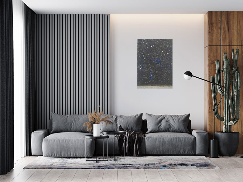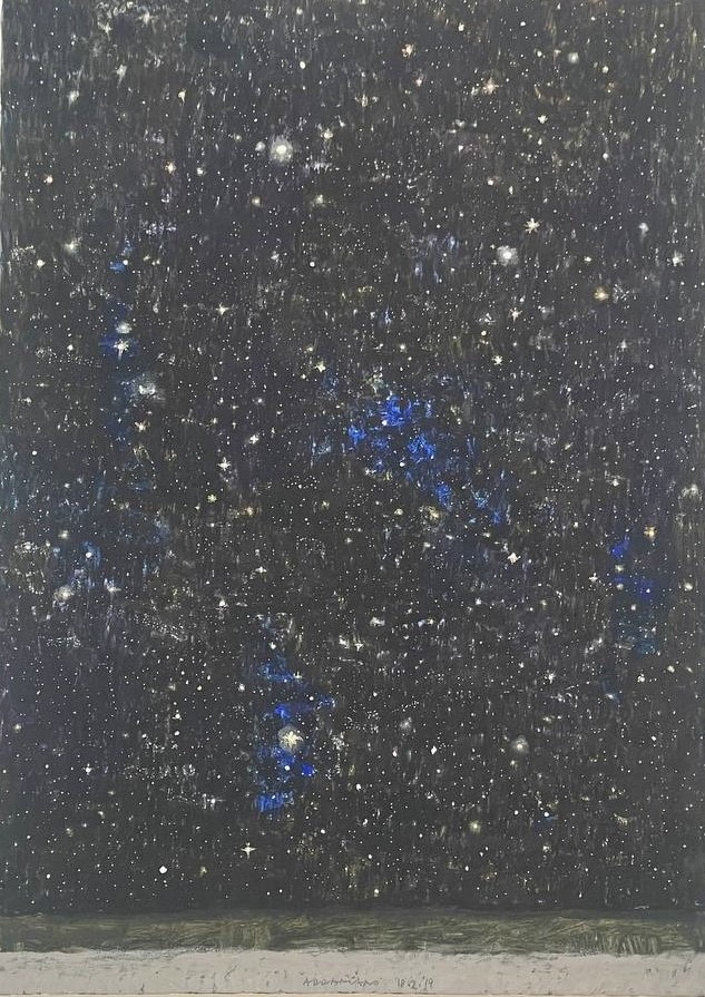 Il paesaggio di Addamiano è appercezione biografica, prima di tutto, è immersione e fluenza affettiva: e ogni cielo è la pagina di un privatissimo journal, notte dopo notte, luce dopo luce, sentimento dopo sentimento. La condizione che egli sceglie per se stesso è quella della plenitudine dell’immersione emotiva, ma allo stesso tempo di una messa in distanza della visione: l’orizzonte non è transito possibile, ma confine incoercibile della lontananza assoluta, dell’irraggiungibile. Protagonista assoluto, dunque, il cielo stellato. Addamiano lo ausculta in profondità , ne risente gli umori ultimi, attraverso il suo istinto, vocazionale e insieme affinatissimo per tecniche, del colore.