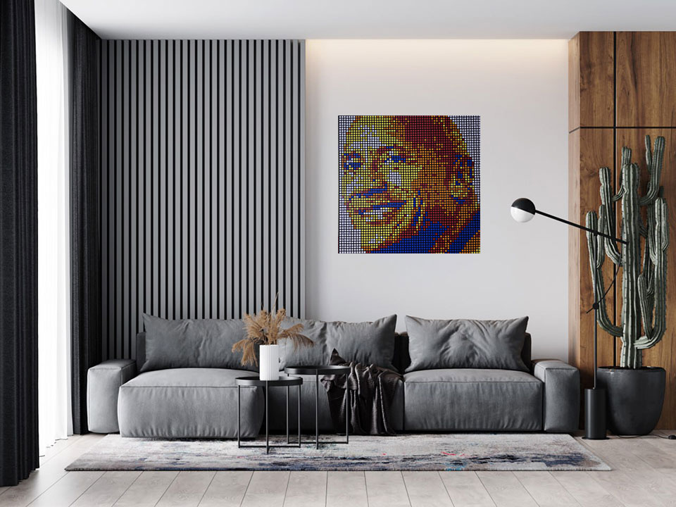 Partendo da una tua fotografia o un’immagine iconica che vuoi ricreare, l’artista Daniel Motta, costruisce un quadro artistico composto da Cubi di Rubik risolti in modo da ricreare la grafica iniziale.