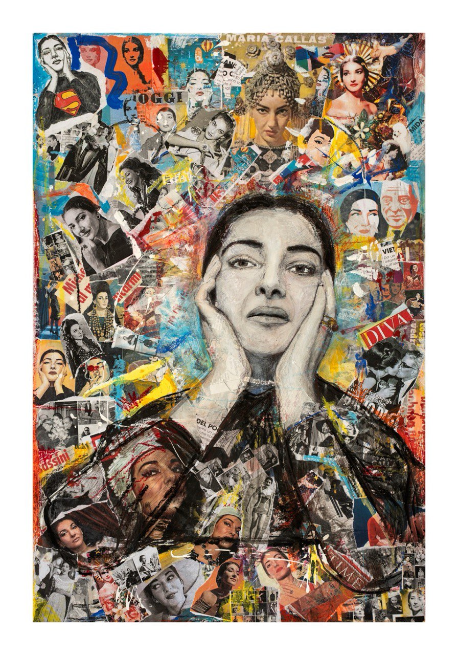 Vincenzo Mascoli nei suoi dipinti racconta frammenti di vita quotidiana, attraverso un procedimento di accumulo di porzioni di carta da giornale, appartenenti al repertorio iconico della collettività, e stralci di memoria soggettiva subiscono, nell’arte di Mascoli, un processo di accumulo e contaminazione estetica con segni pittorici decisi, cromie intense e ritagli cartacei, ricodificandosi in sequenze visive dalla natura caleidoscopica. L’identità del singolo è efficacemente restituita e narrata nei suoi aspetti più instabili e contraddittori, in quelle fluide e continue interferenze, tipiche della contemporaneità globale, tra dimensione pubblica e privata. Una sintassi compositiva dinamica, che non respinge, ma ingloba, al suo interno, elementi propri della comunicazione di massa.