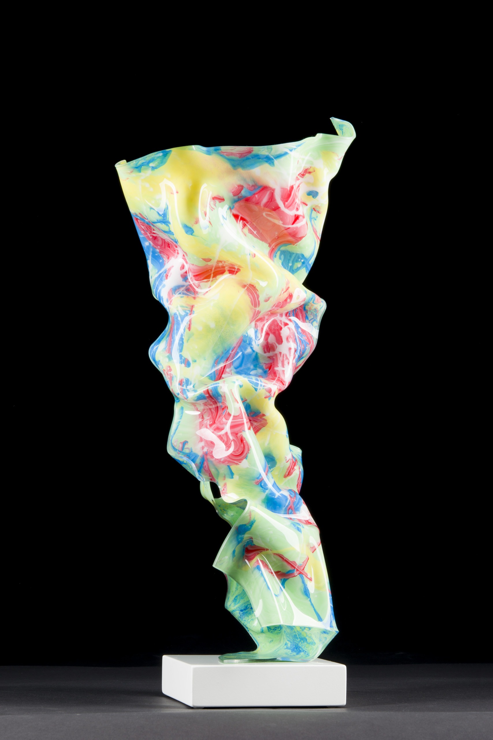 Scultura in metacrilato pigmentata con smalti e termoformata, firmata dall’artista attraverso microsabbiatura.