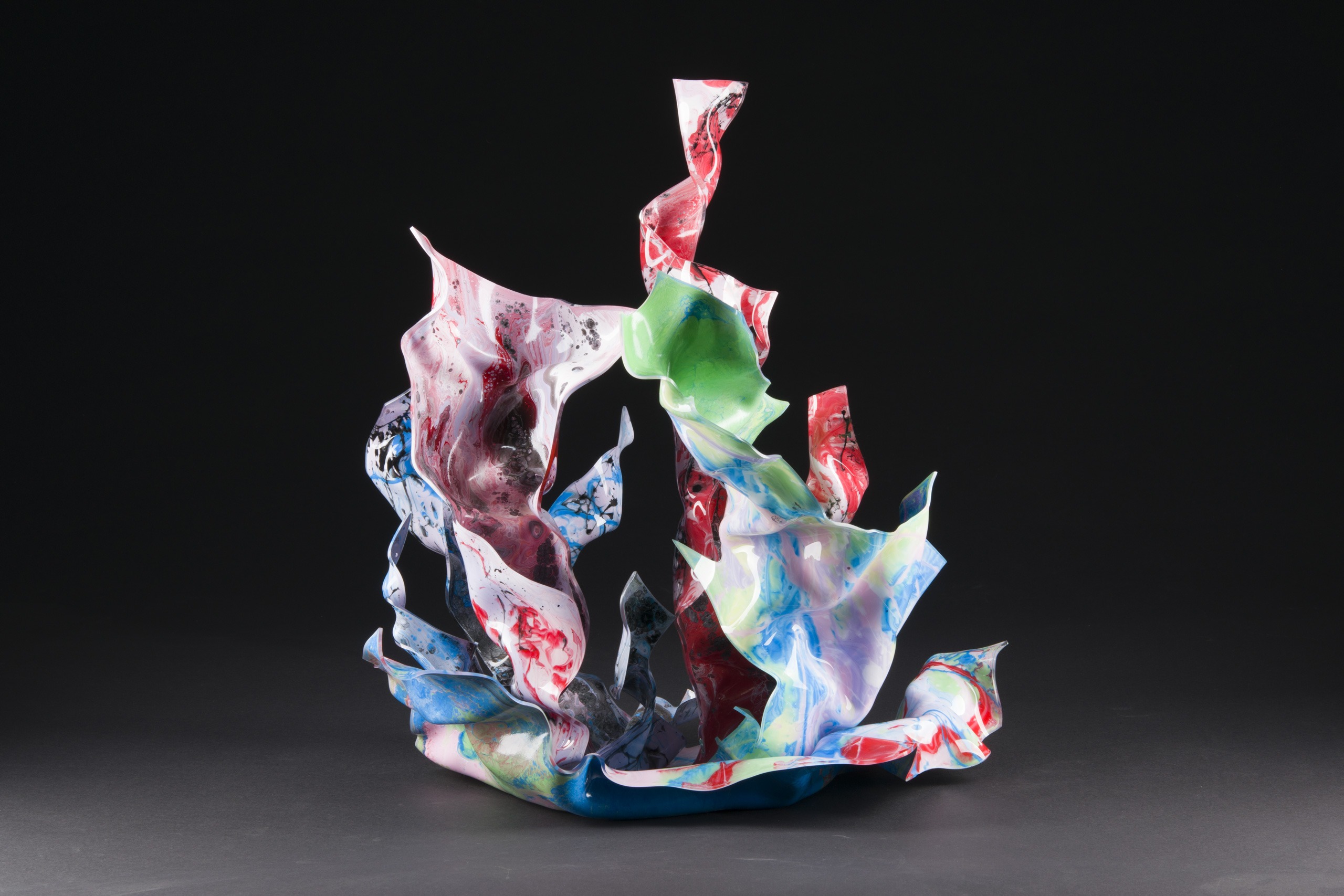 Scultura in metacrilato pigmentata con smalti e termoformata, firmata dall’artista attraverso microsabbiatura.