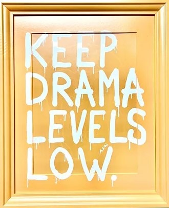 “KEEP DRAMA LEVELS LOW” è un reminder, per ricordare di non reagire in maniera smodata neanche alle piccole cose, altrimenti il nostro cervello si abitua ad avere quelle reazioni ad ogni sorpresa non desiderata ed il “pattern” si ripetera’ sempre.