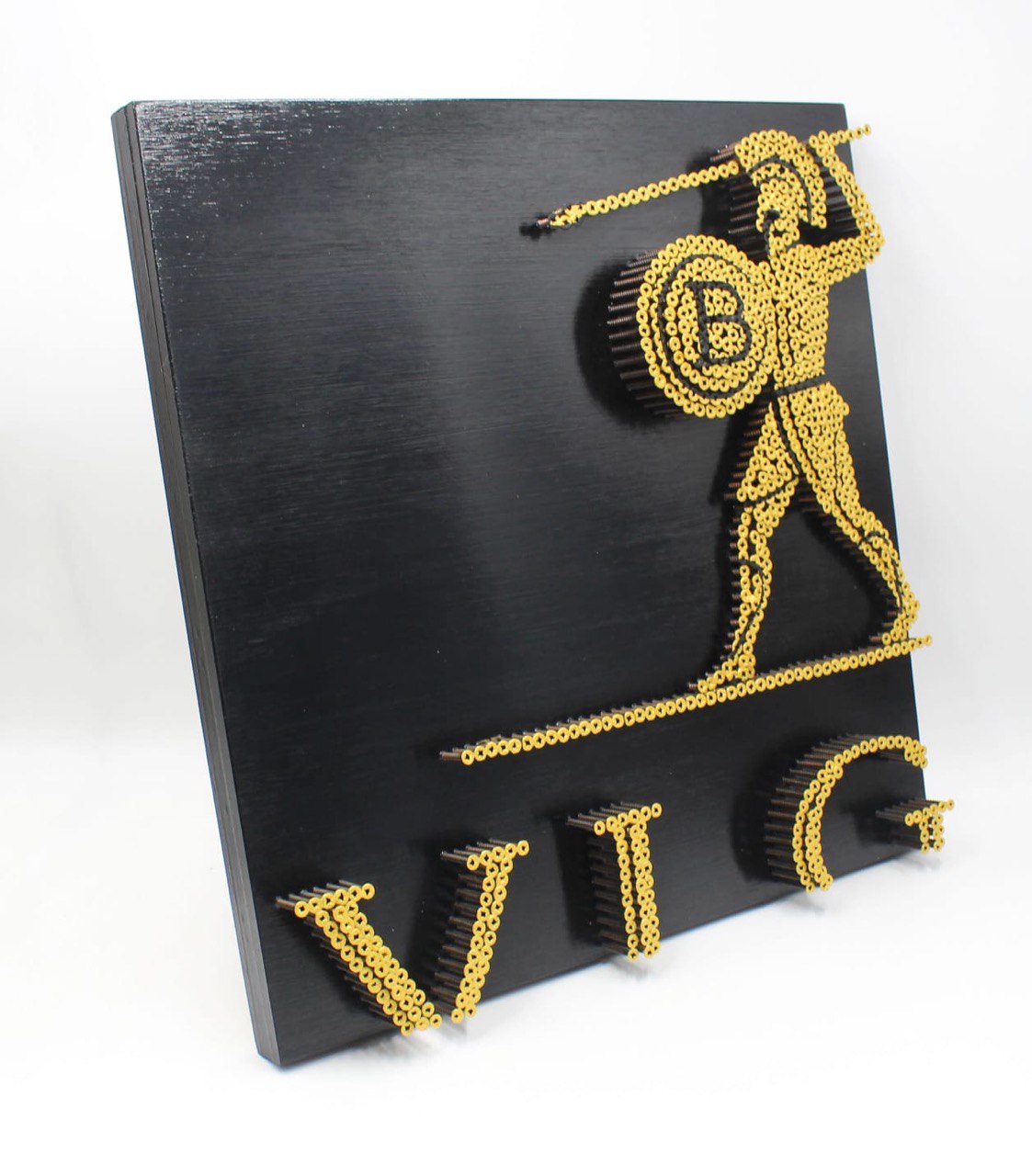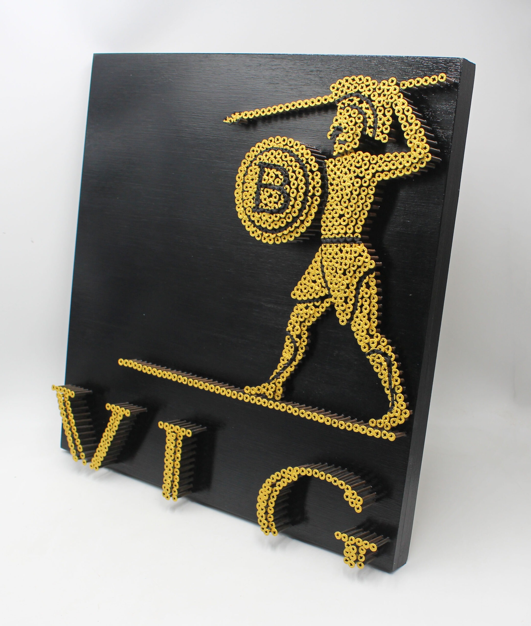Alessandro Padovan realizza le sue opere con la tecnica della Screw Art con viti bronzate autofilettanti.