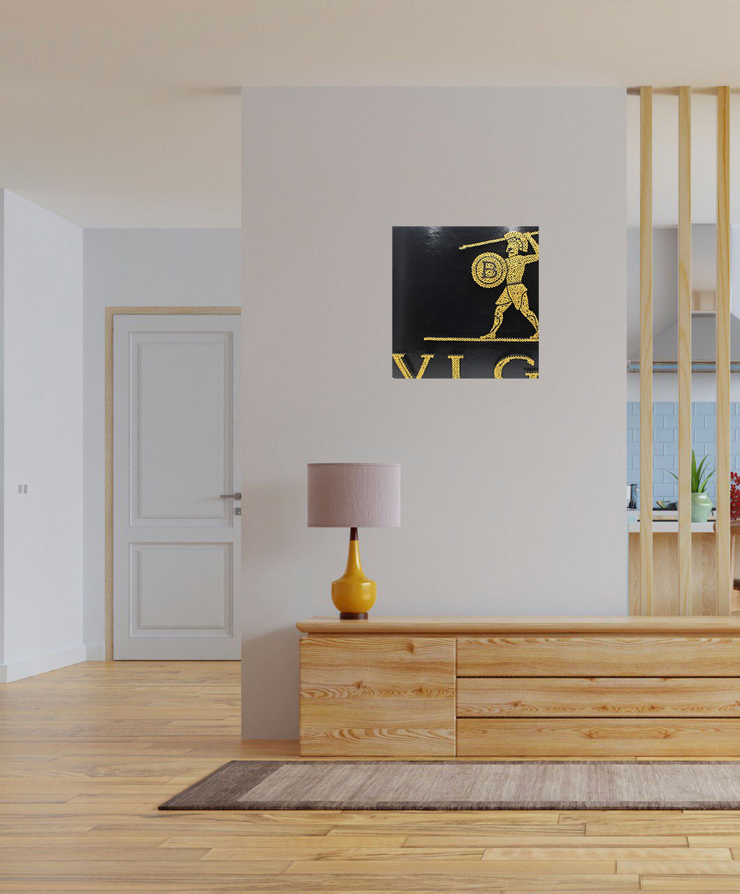 L’originalità di questo lavoro è l’effetto tridimensionale che si ottiene avvitando delle comunissime viti in varie profondità che dipingendoci sopra si trasforma in un’opera scultorea e pittorica contemporanea.