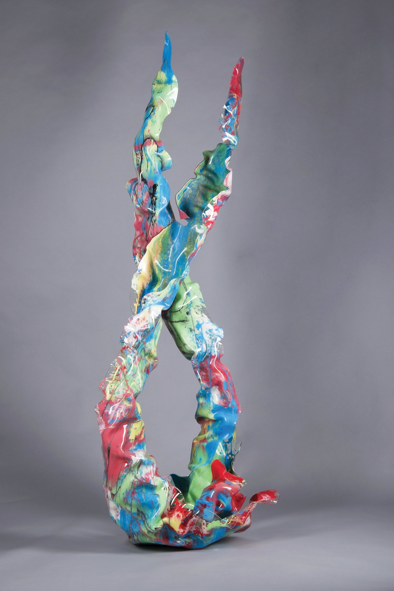 Scultura in metacrilato pigmentata con smalti e termoformata, firmata dall’artista attraverso microsabbiatura.