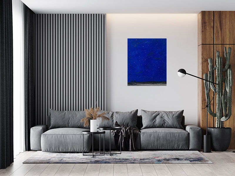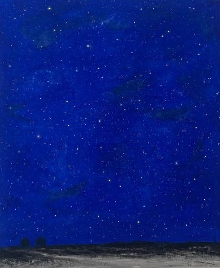 Il paesaggio di Addamiano è appercezione biografica, prima di tutto, è immersione e fluenza affettiva: e ogni cielo è la pagina di un privatissimo journal, notte dopo notte, luce dopo luce, sentimento dopo sentimento. La condizione che egli sceglie per se stesso è quella della plenitudine dell’immersione emotiva, ma allo stesso tempo di una messa in distanza della visione: l’orizzonte non è transito possibile, ma confine incoercibile della lontananza assoluta, dell’irraggiungibile. Protagonista assoluto, dunque, il cielo stellato. Addamiano lo ausculta in profondità , ne risente gli umori ultimi, attraverso il suo istinto, vocazionale e insieme affinatissimo per tecniche, del colore.