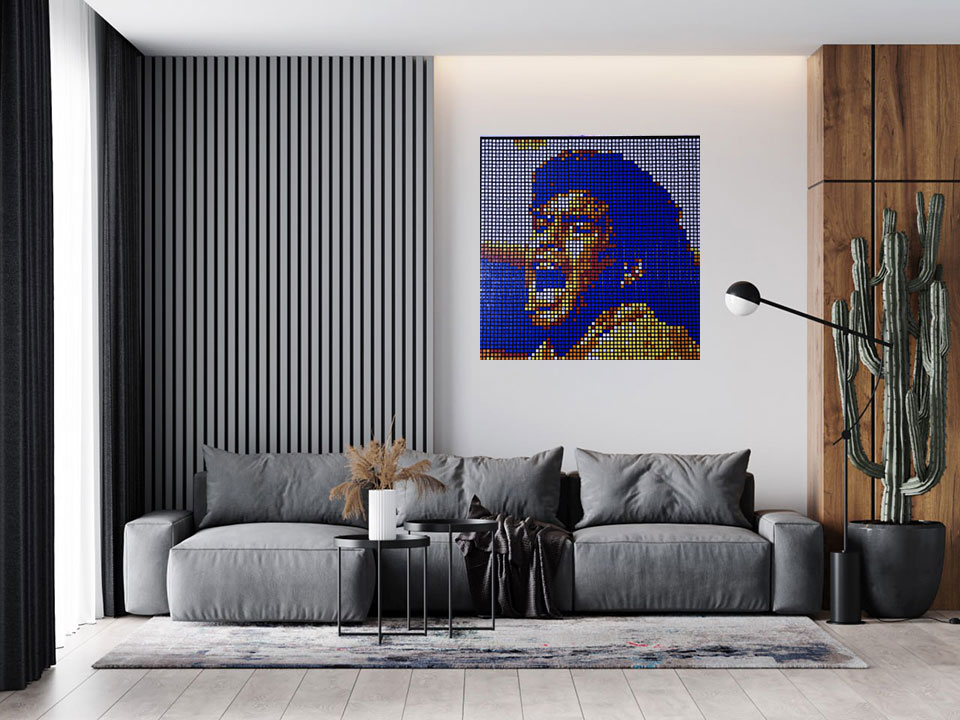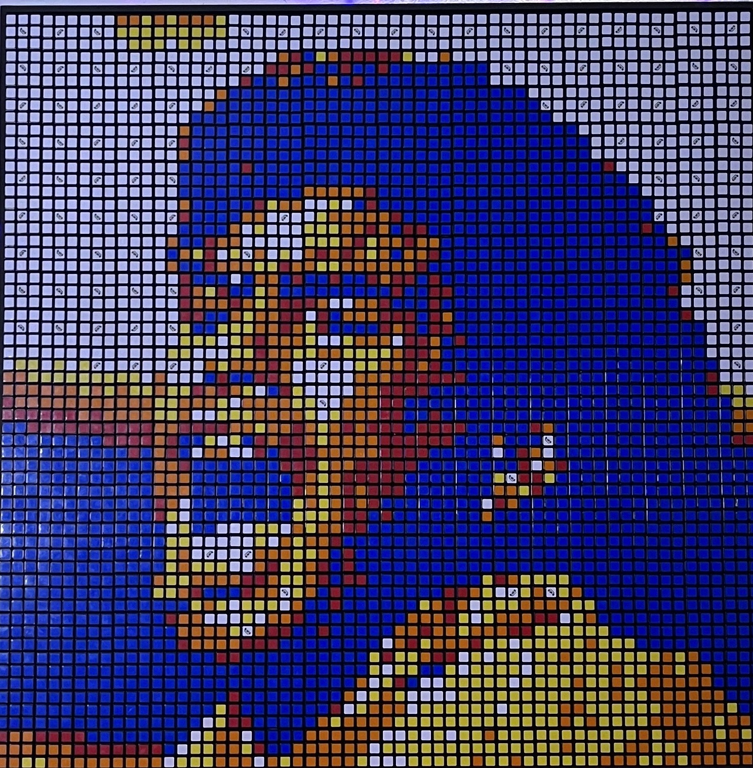Partendo da una tua fotografia o un’immagine iconica che vuoi ricreare, l’artista Daniel Motta, costruisce un quadro artistico composto da Cubi di Rubik risolti in modo da ricreare la grafica iniziale.