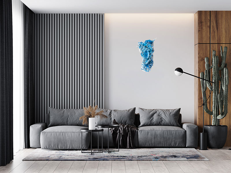 Scultura in metacrilato pigmentata con smalti e termoformata, firmata dall’artista attraverso microsabbiatura.
