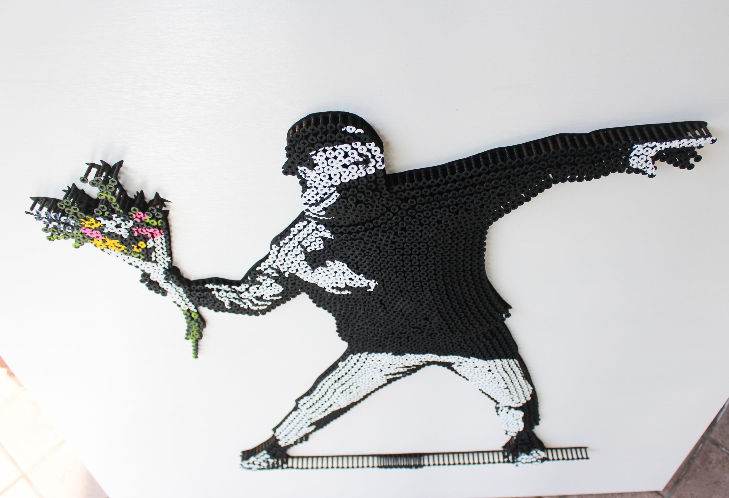 L’originalità di questo lavoro è l’effetto tridimensionale che si ottiene avvitando delle comunissime viti in varie profondità che dipingendoci sopra si trasforma in un’opera scultorea e pittorica contemporanea.