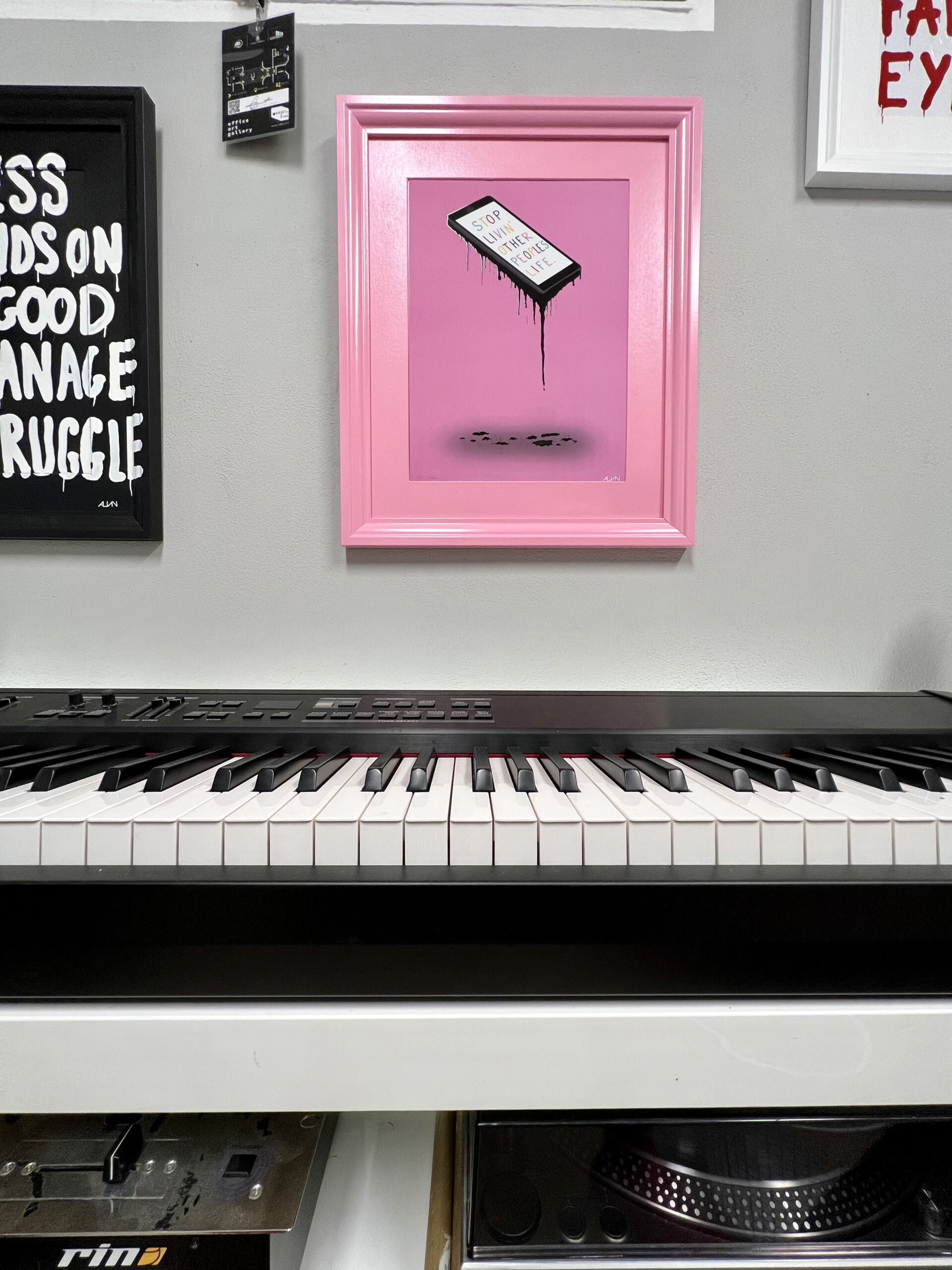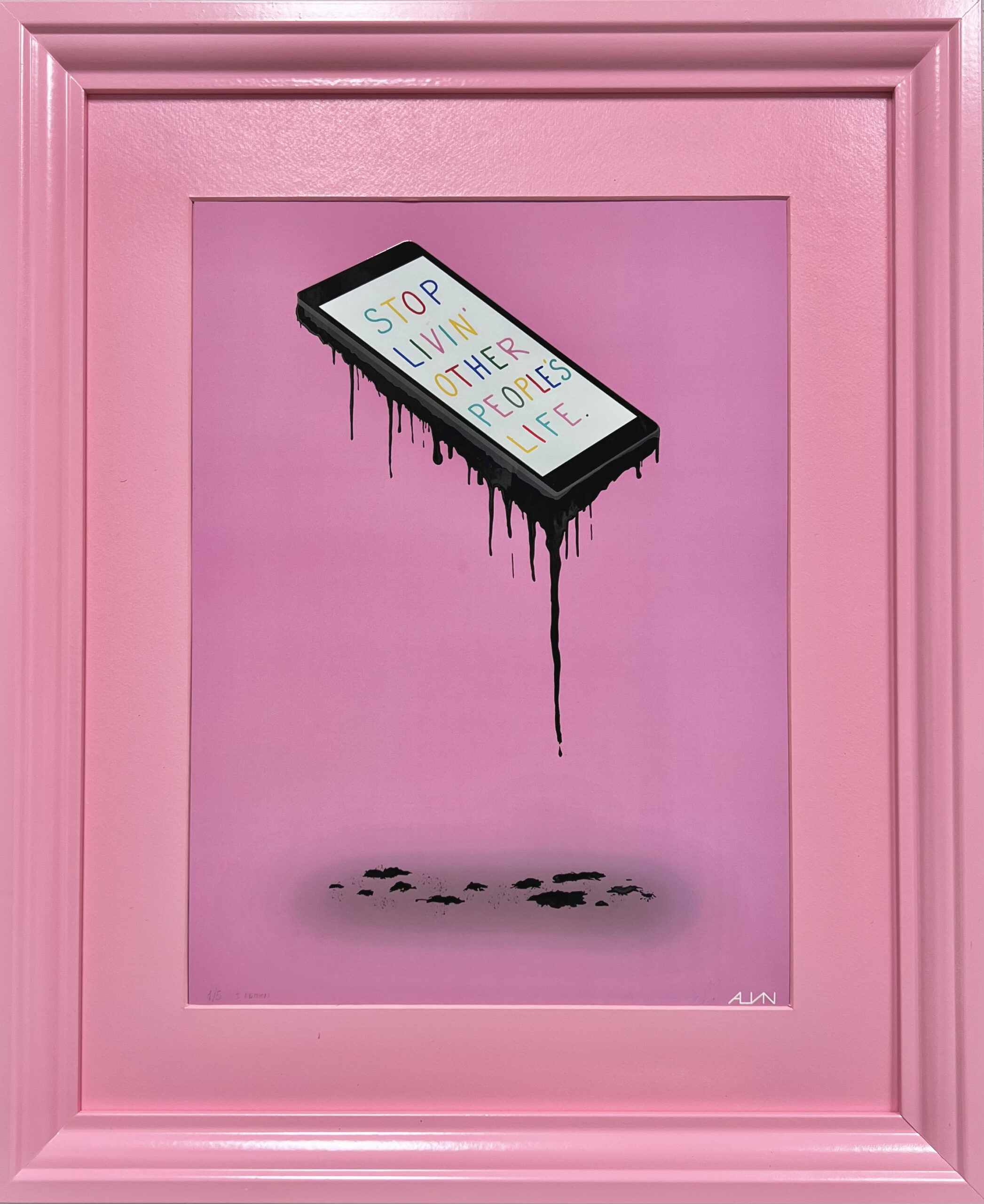 L’ombra e le gocce sul pavimento aggiungono profondità al significato, rappresentando le impronte lasciate e le vite rovinate dal perseguire l’irraggiungibile. Alvin ci invita a riflettere sul valore dell’empatia e dell’autenticità sacrificati per il successo e la fama.