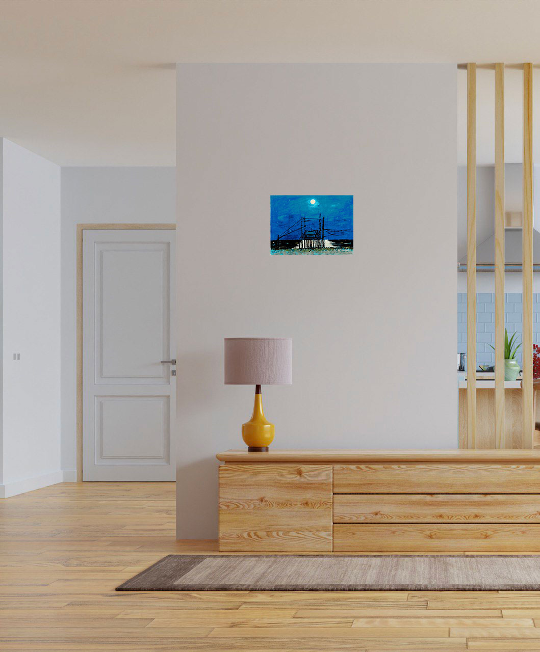 Il paesaggio di Addamiano è appercezione biografica, prima di tutto, è immersione e fluenza affettiva: e ogni cielo è la pagina di un privatissimo journal, notte dopo notte, luce dopo luce, sentimento dopo sentimento. La condizione che egli sceglie per se stesso è quella della plenitudine dell’immersione emotiva, ma allo stesso tempo di una messa in distanza della visione: l’orizzonte non è transito possibile, ma confine incoercibile della lontananza assoluta, dell’irraggiungibile. Protagonista assoluto, dunque, il cielo stellato. Addamiano lo ausculta in profondità, ne risente gli umori ultimi, attraverso il suo istinto, vocazionale e insieme affinatissimo per tecniche, del colore.