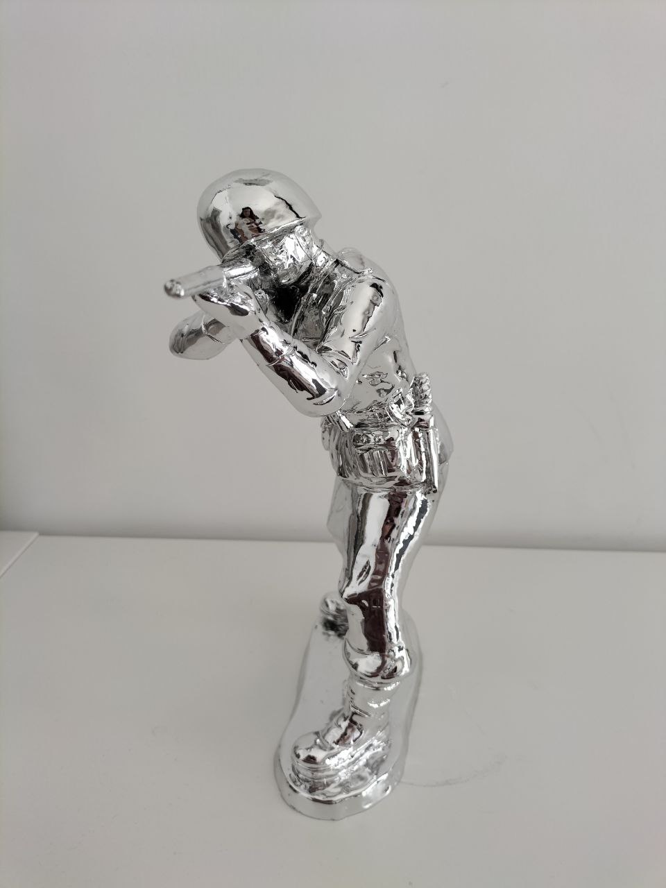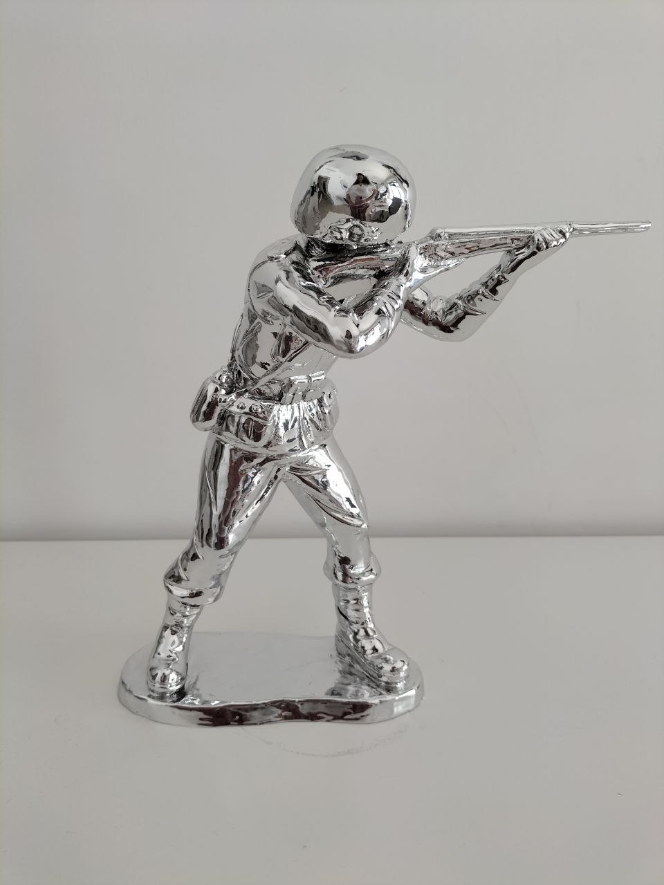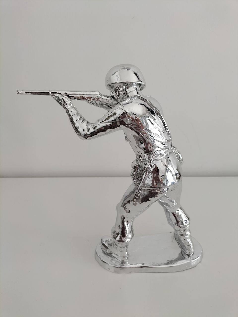 La scultura di Alessandro Padovan raffigura il classico soldatino giocattolo in plastica creato in vari colori Pop.